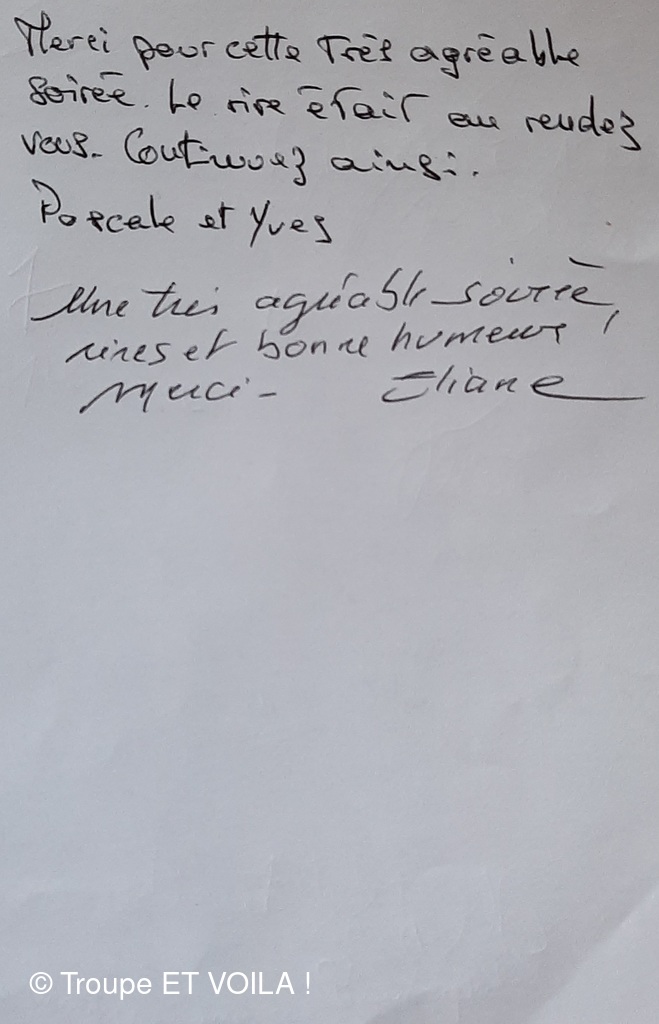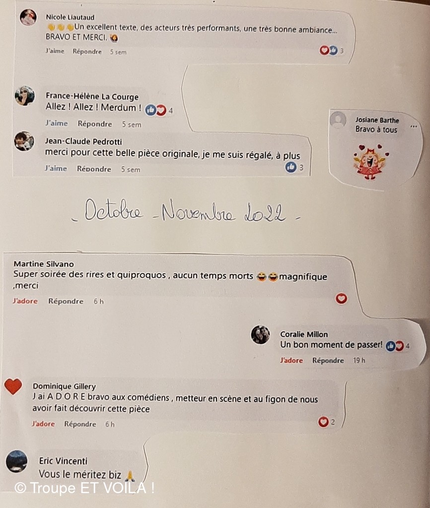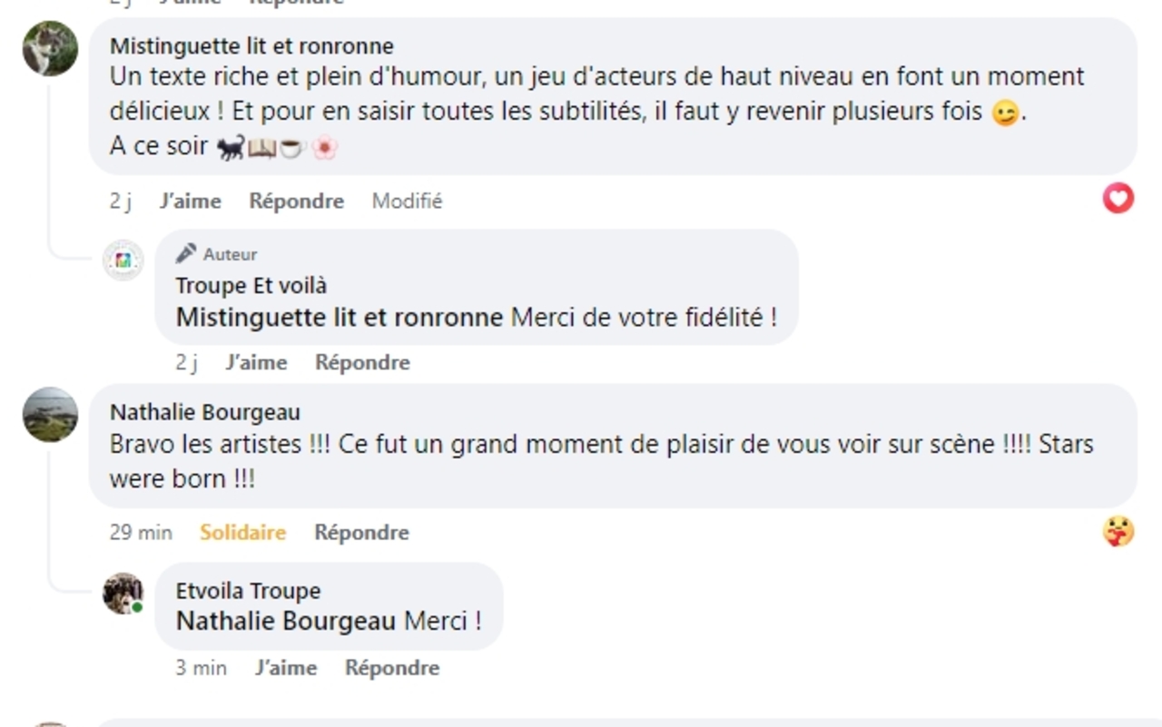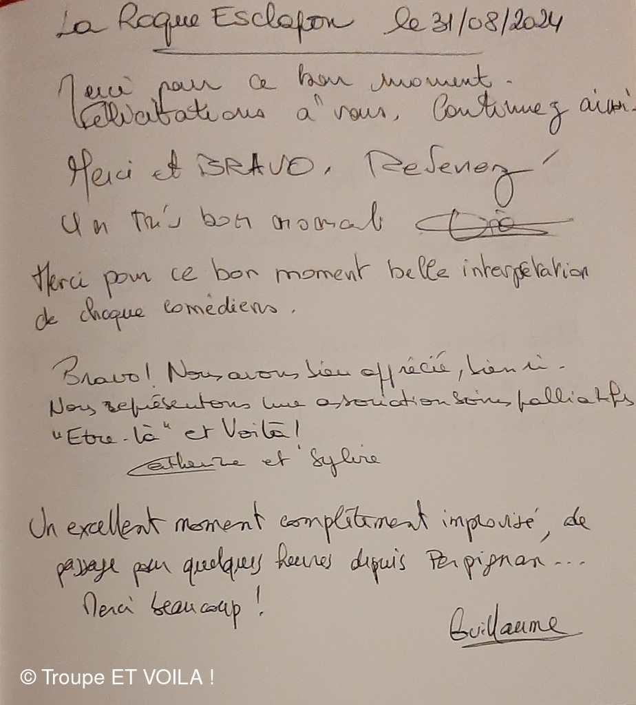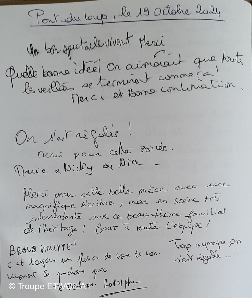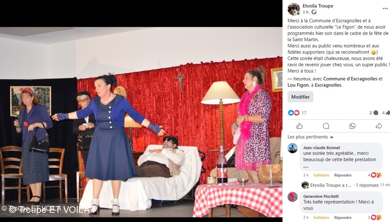 • Nous avons assisté à la à la piece (une veillée pas coutumière) le 12 septembre à Plascassier et nous avons passé une délicieuse soirée , beaucoup ri ; les acteurs sont formidables ; si vou...