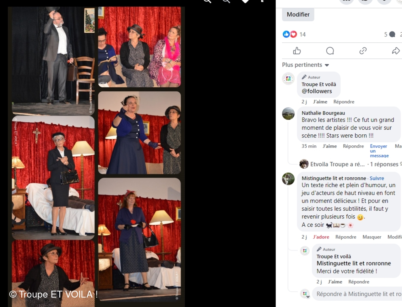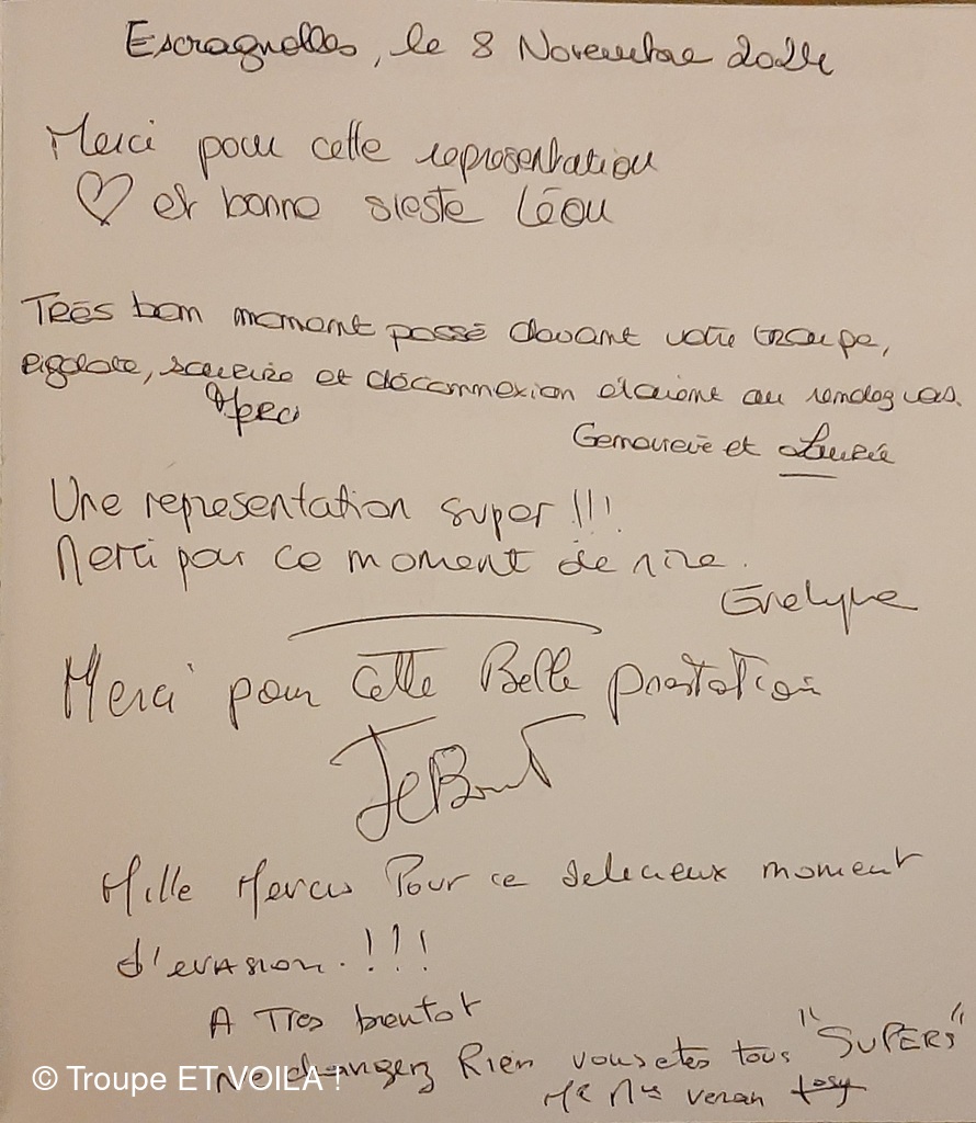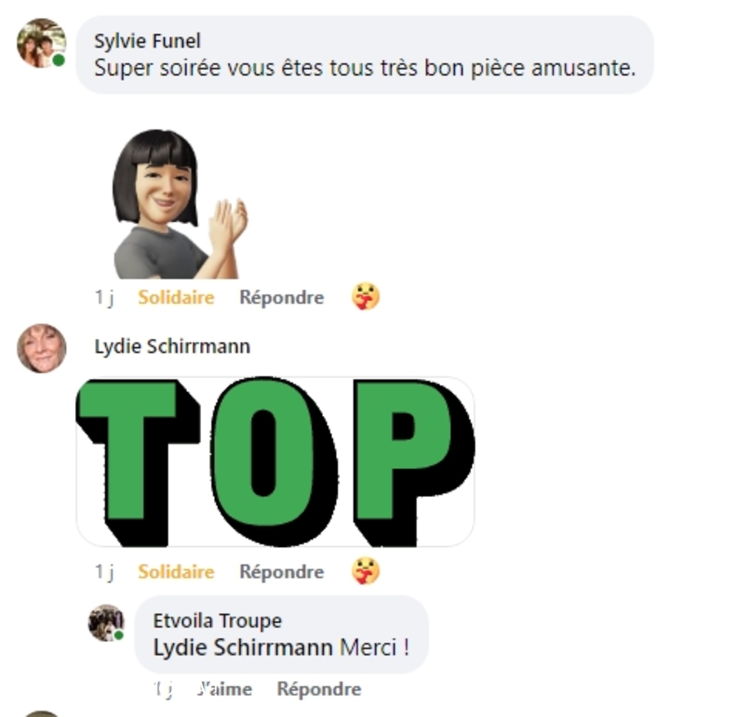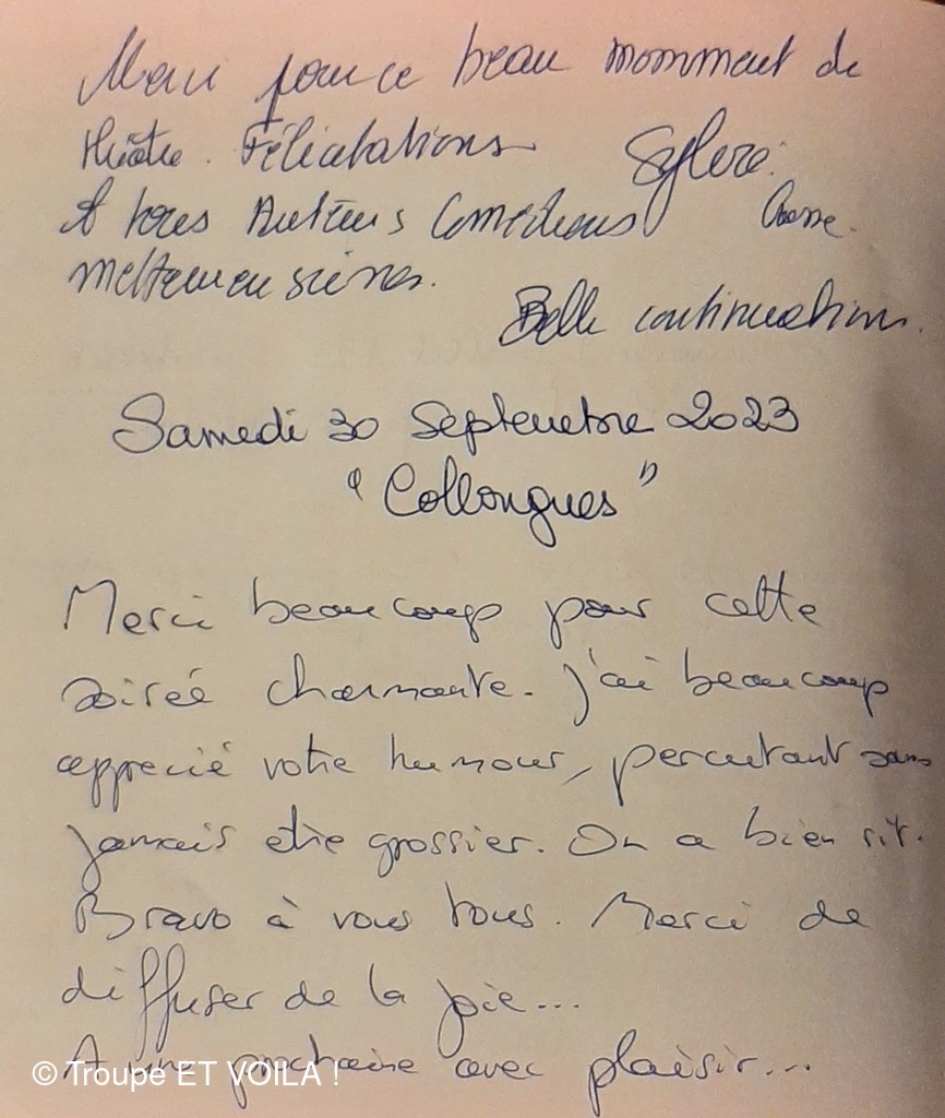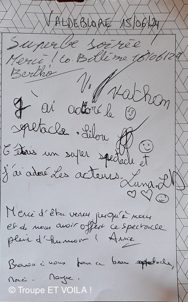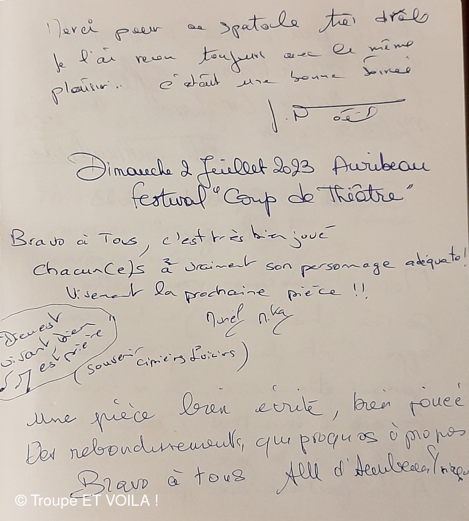 • Nous avons assisté à la à la piece (une veillée pas coutumière) le 12 septembre à Plascassier et nous avons passé une délicieuse soirée , beaucoup ri ; les acteurs sont formidables ; si vou...